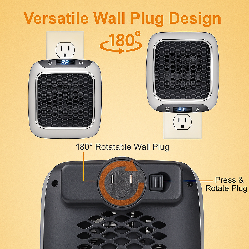 No more bulky heaters or cold nights! This compact, plug-in wall heater fills your room with instant, soothing heat — quietly, safely, and efficiently.